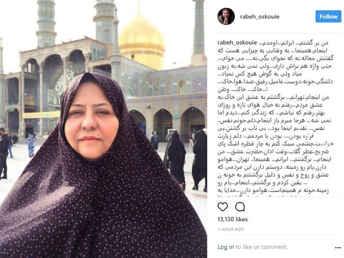 متن و عکس بازگشت رابعه اسکویی را در ادامه ببینید: