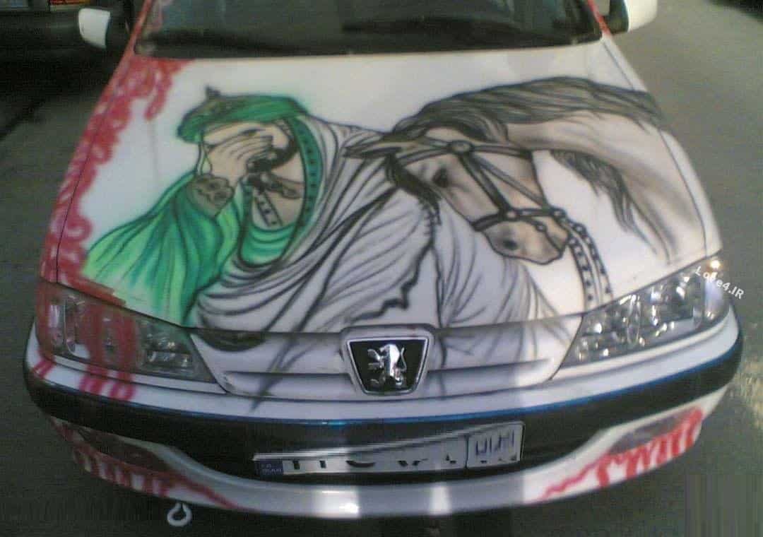 نقاشی عاشورایی و پشت نویسی ماشین در محرم
